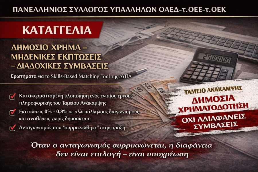 Ο σύλλογος υπαλλήλων της Δημόσιας Υπηρεσίας Απασχόλησης καταγγέλλει ότι το κόστος διογκώθηκε κατά 13 εκατ. ευρώ και μάλιστα για ένα.