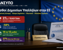 Έρευνα του ΠΑΝ.Σ.ΥΠ.Ο – Τελευταίοι στην Ευρώπη οι μισθοί των δημοσίων