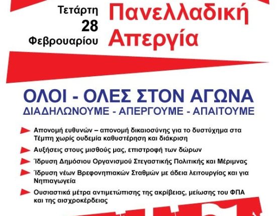 Ενώνουμε τις φωνές μας – Γενική 24ωρη Πανελλαδική Απεργία – Οι εγκληματικές ευθύνες όσων φταίνε για τα αδικοχαμένα παιδιά των Τεμπών δεν θα ξεχαστούν