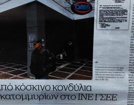 «Στο στόχαστρο των επιθεωρητών δημόσιας διοίκησης βρίσκονται οι επιχορηγήσεις του ΟΑΕΔ προς το ΙΝΕ ΓΣΕΕ, ενώ εξηγήσεις έχει ζητήσει από τον Οργανισμό και.