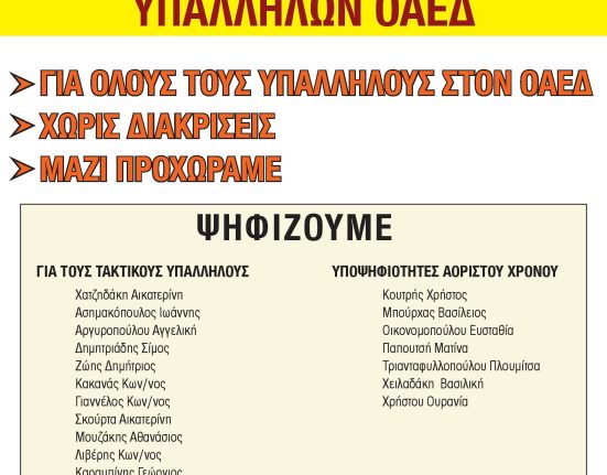 Δευτέρα 5 Δεκεμβρίου – ψηφίζουμε για τους εκπροσώπους μας στο Υπηρεσιακό & Πειθαρχικό Συμβούλιο του ΟΑΕΔ