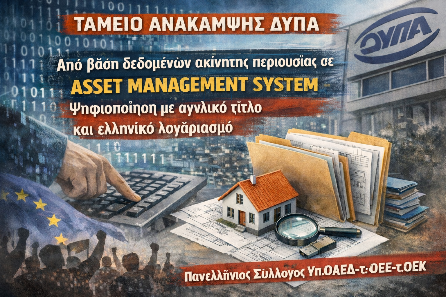 Για τον λόγο αυτό, καλούμε σε άμεσο κοινοβουλευτικό έλεγχο για το σύνολο του έργου «ASSET MANAGEMENT SYSTEM – Βάση Δεδομένων Ακίνητης Περιουσίας ΔΥΠΑ», για τις τροποποιήσεις ένταξης που εκτόξευσαν τον προϋπολογισμό, για τη διαδικασία του διαγωνισμού και για τους όρους παράδοσης, παραλαβής και μελλοντικής λειτουργίας του συστήματος.