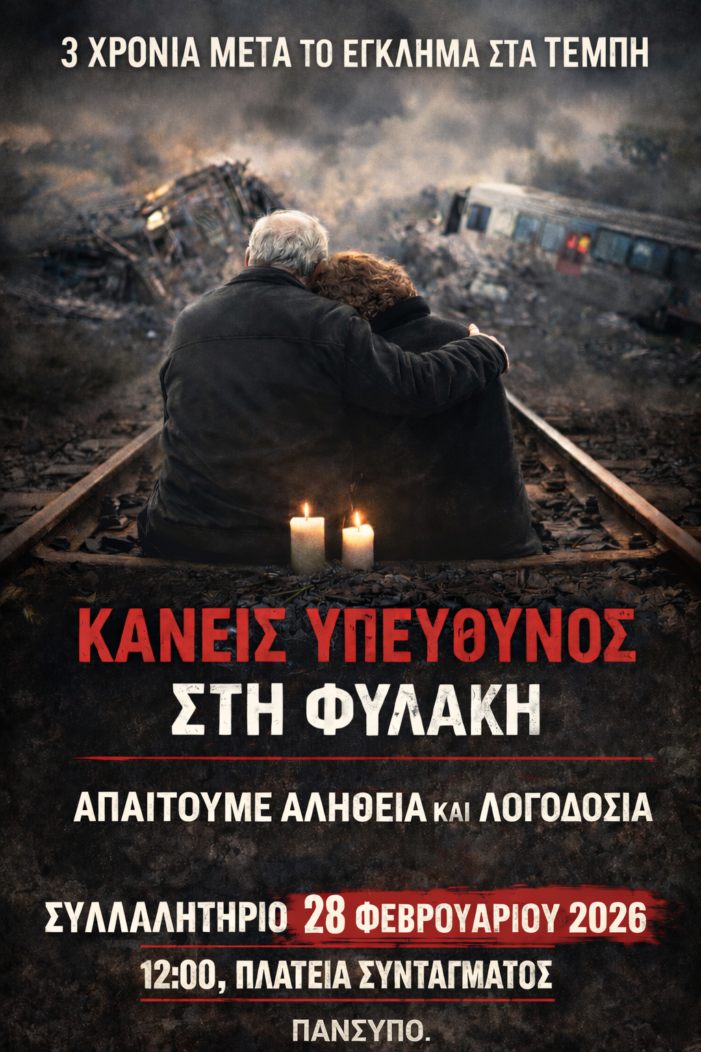 Τρία χρόνια μετά, δεν ζητάμε απλώς «δικαίωση». Απαιτούμε αλήθεια, πλήρη πολιτική και ποινική λογοδοσία και ασφαλείς, δημόσιες, κοινωνικά ελεγχόμενες υποδομές, ώστε να μην υπάρξουν ποτέ ξανά «Τέμπη».